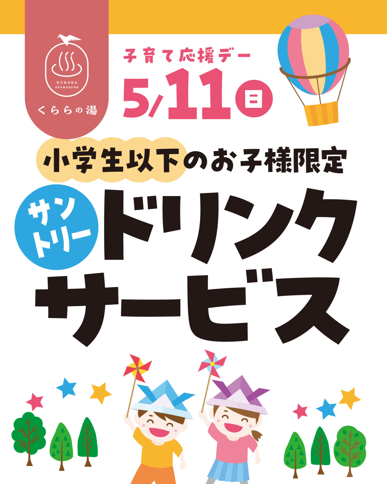 🎉5/11は【子育て応援デー】🎉がんばるパパママを応援✨くららの湯からうれしいプレゼント🎁