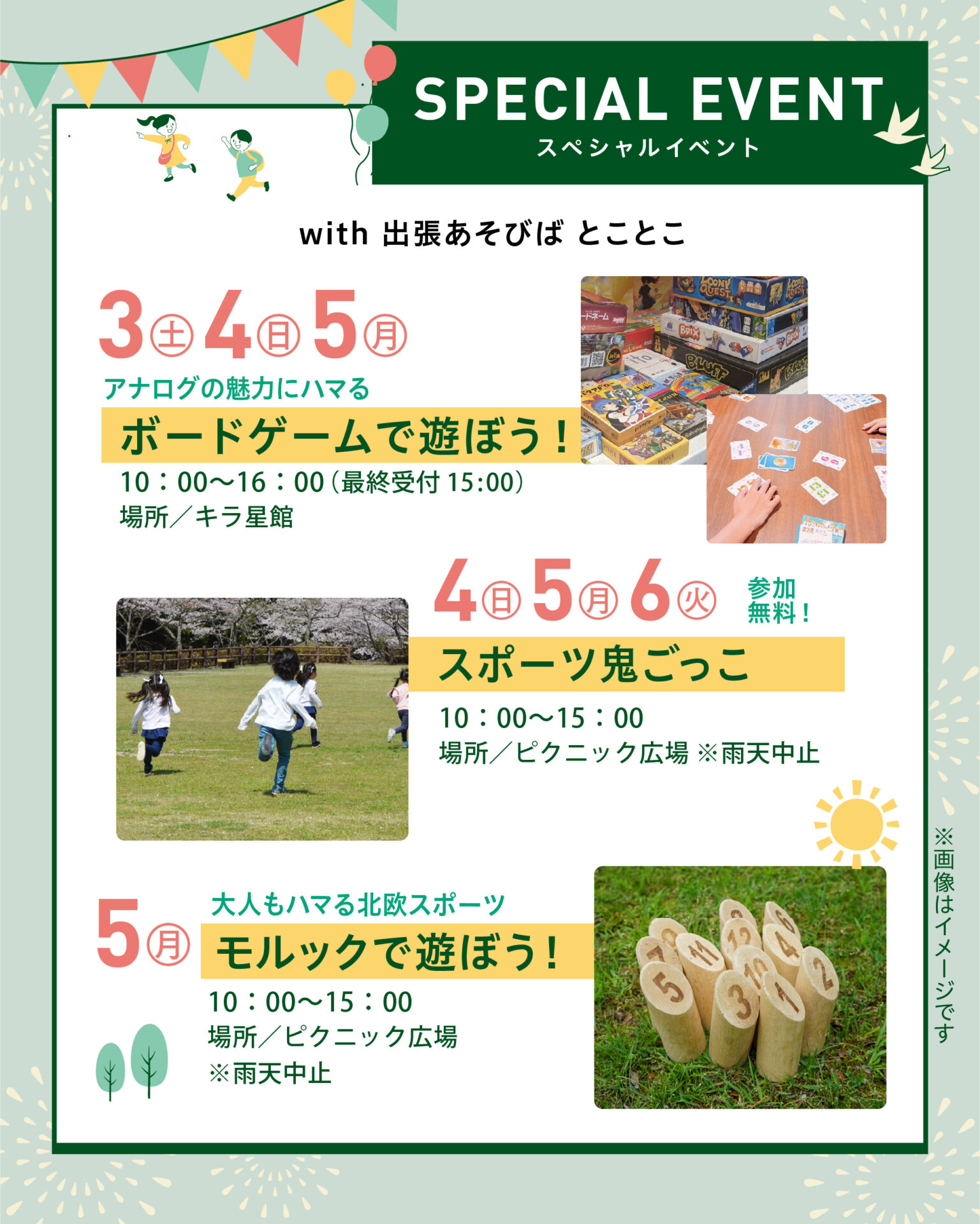 10:00〜15:00(計4回開催)|場所:ピクニック広場 ※雨天中止