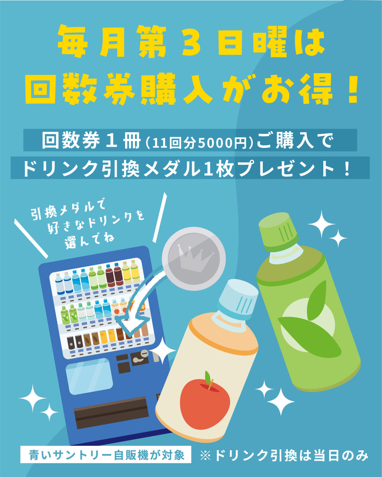 【12/21】先着30冊限定🎁 回数券ご購入でSUNTORY自販機のドリンクプレゼント!