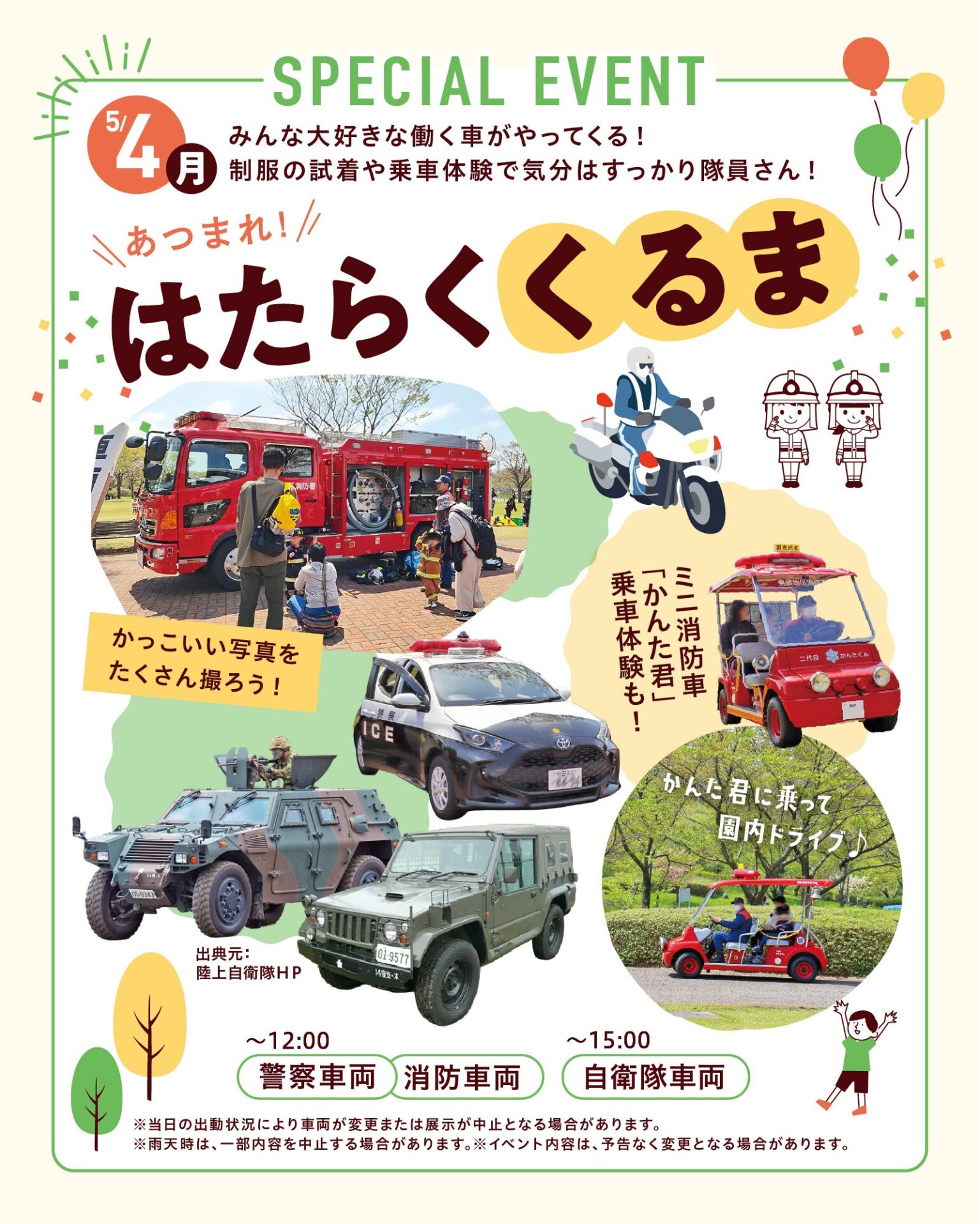※当日の出動状況により車両が変更または展示が中止となる場合があります。
