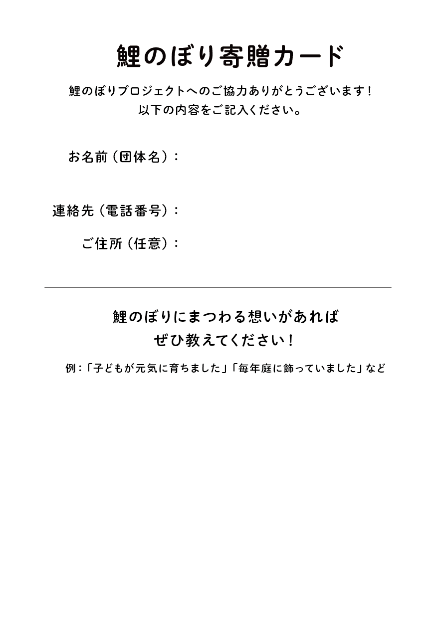 ※破損等が激しく、飾れないこいのぼりは、ご遠慮ください