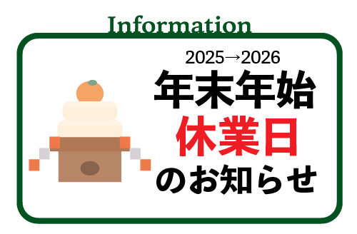 いつも道の駅てんのうをご利用いただき誠にありがとうございます。誠に勝手ながら下記の期間は全施設・店舗を休業とさせていただきます。 🟠2025年12月31日(水)〜2026年1月3日(土) [全施設]くらら… Continue reading 【2025▶2026】年末年始休業日のお知らせ